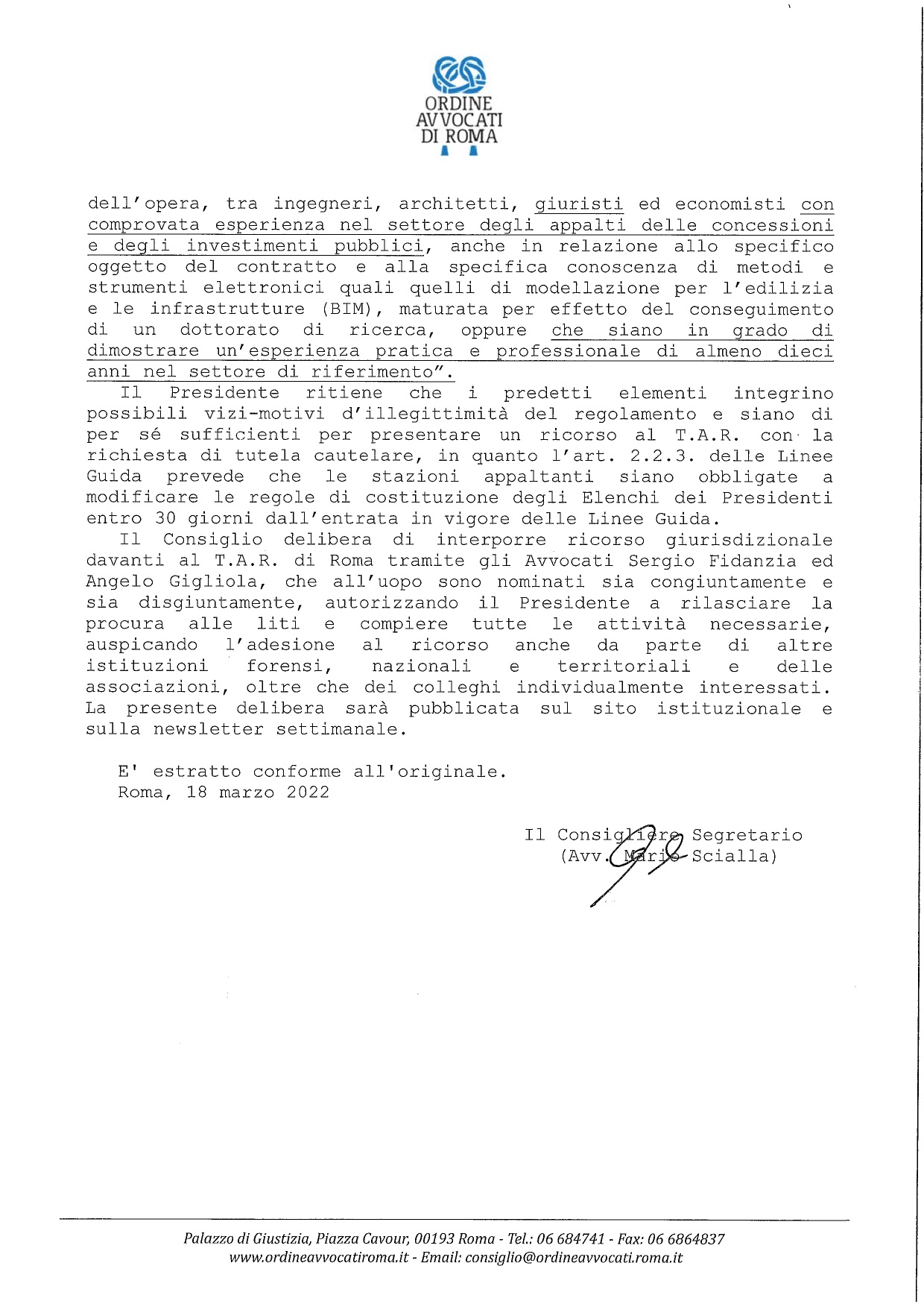 COA Roma: ricorso al T.A.R. vs Ministero delle Infrastrutture e delle Mobilità Sostenibili - Annullamento decreto n.12 del 17.01.2022