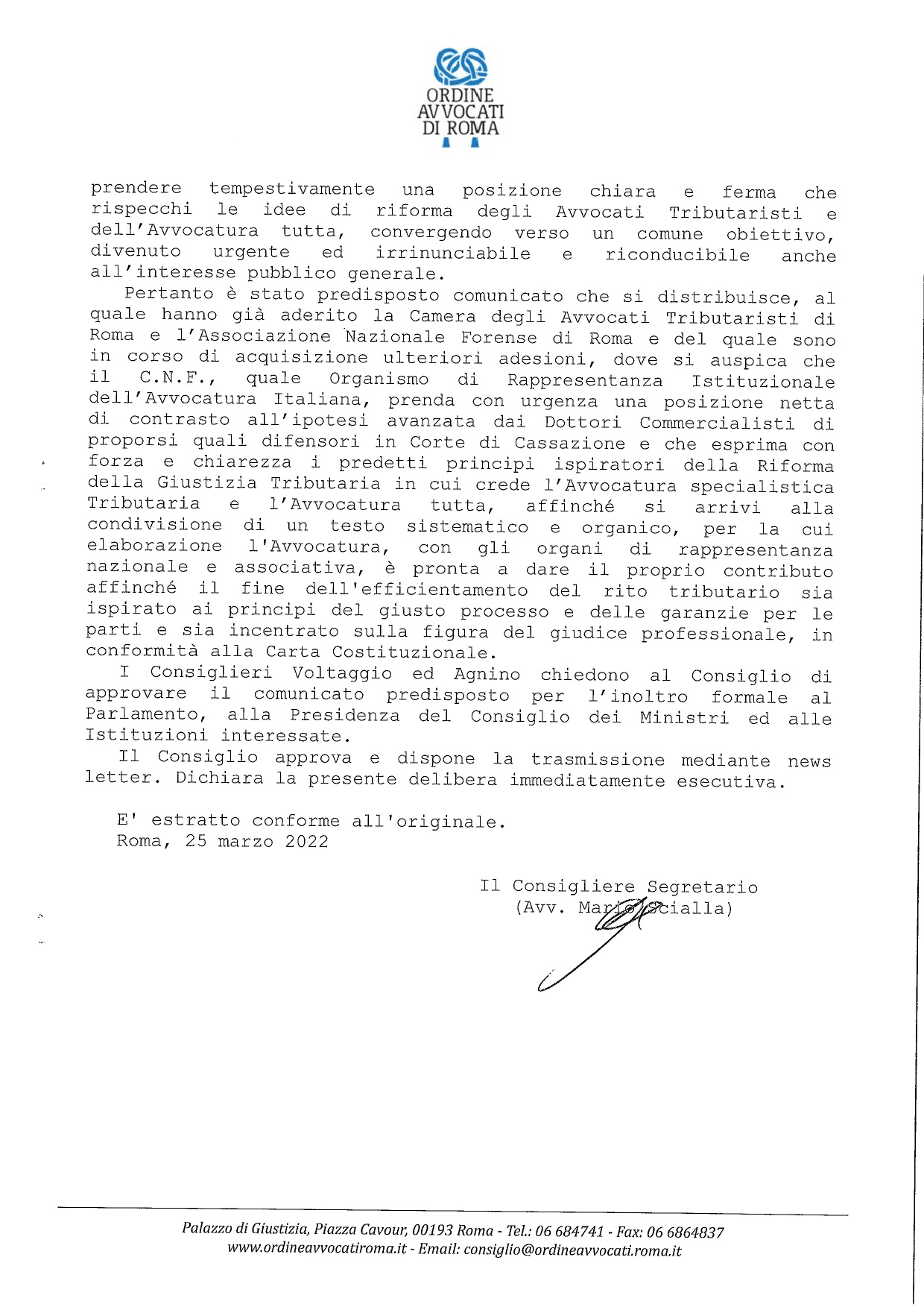 Commissione Diritto Tributario su riforma - Delibera COA Roma 24.03.2022