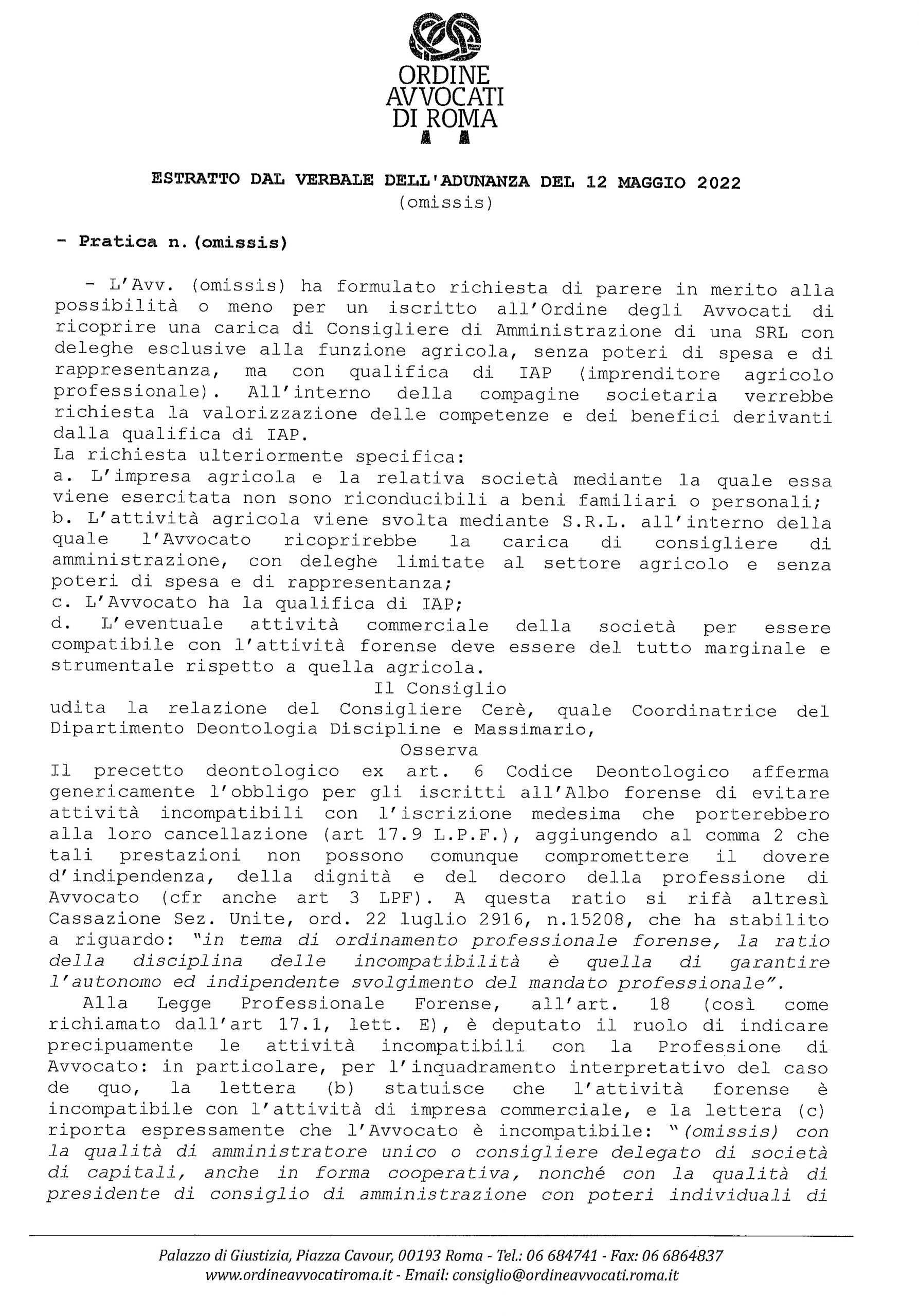 Parere deontologico 12.05.2022