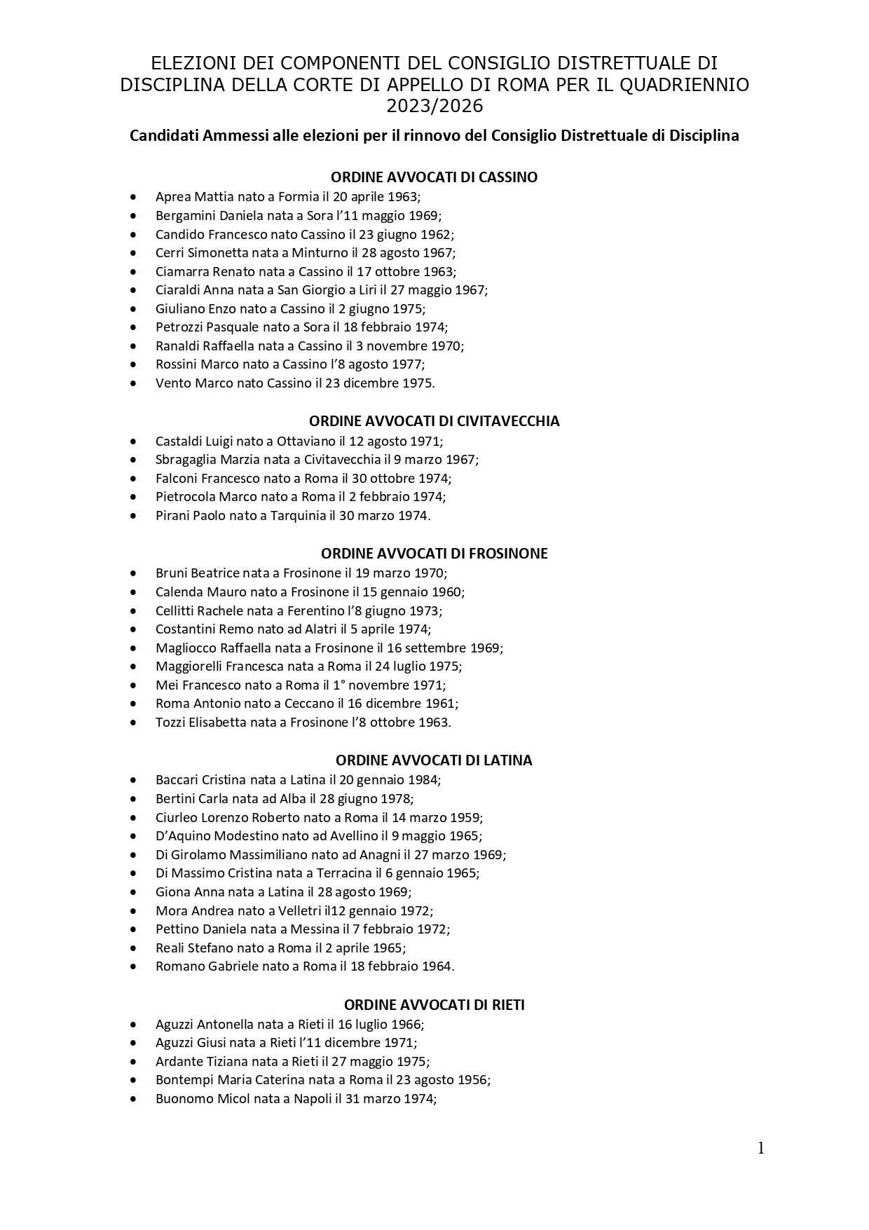 CANDIDATI AMMESSI - RINNOVO C.D.D.