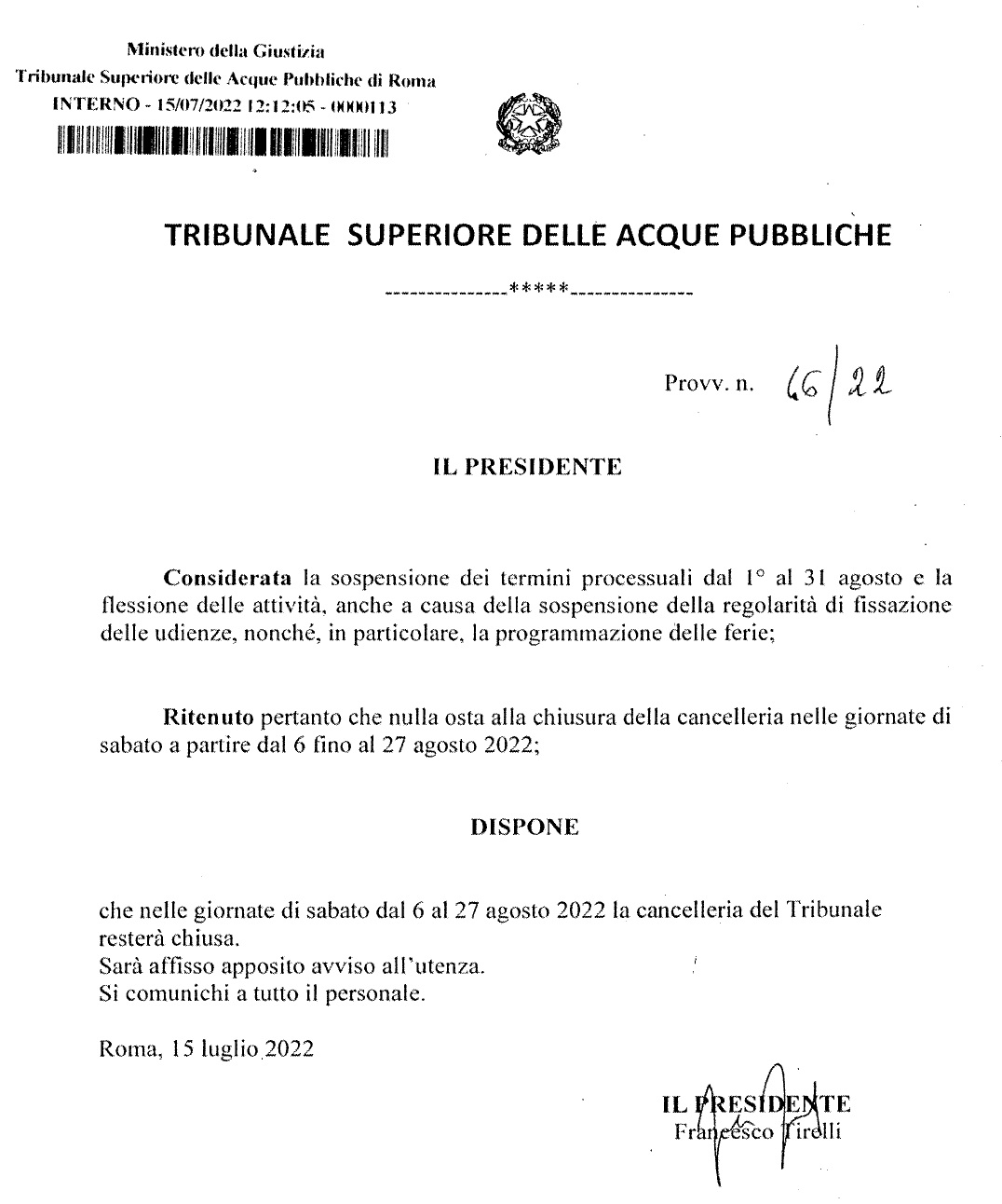 TRIBUNALE SUPERIORE DELLE ACQUE PUBBLICHE 20.07.2022