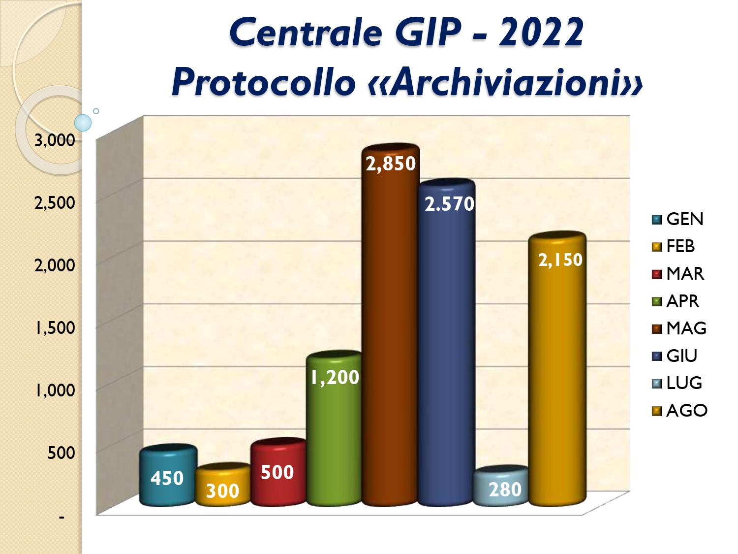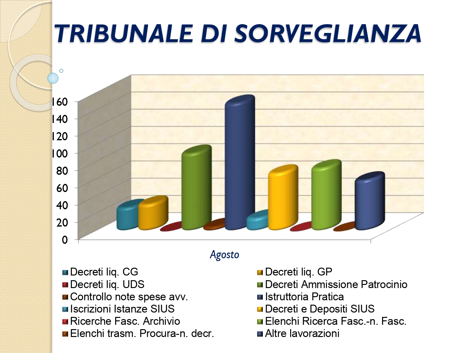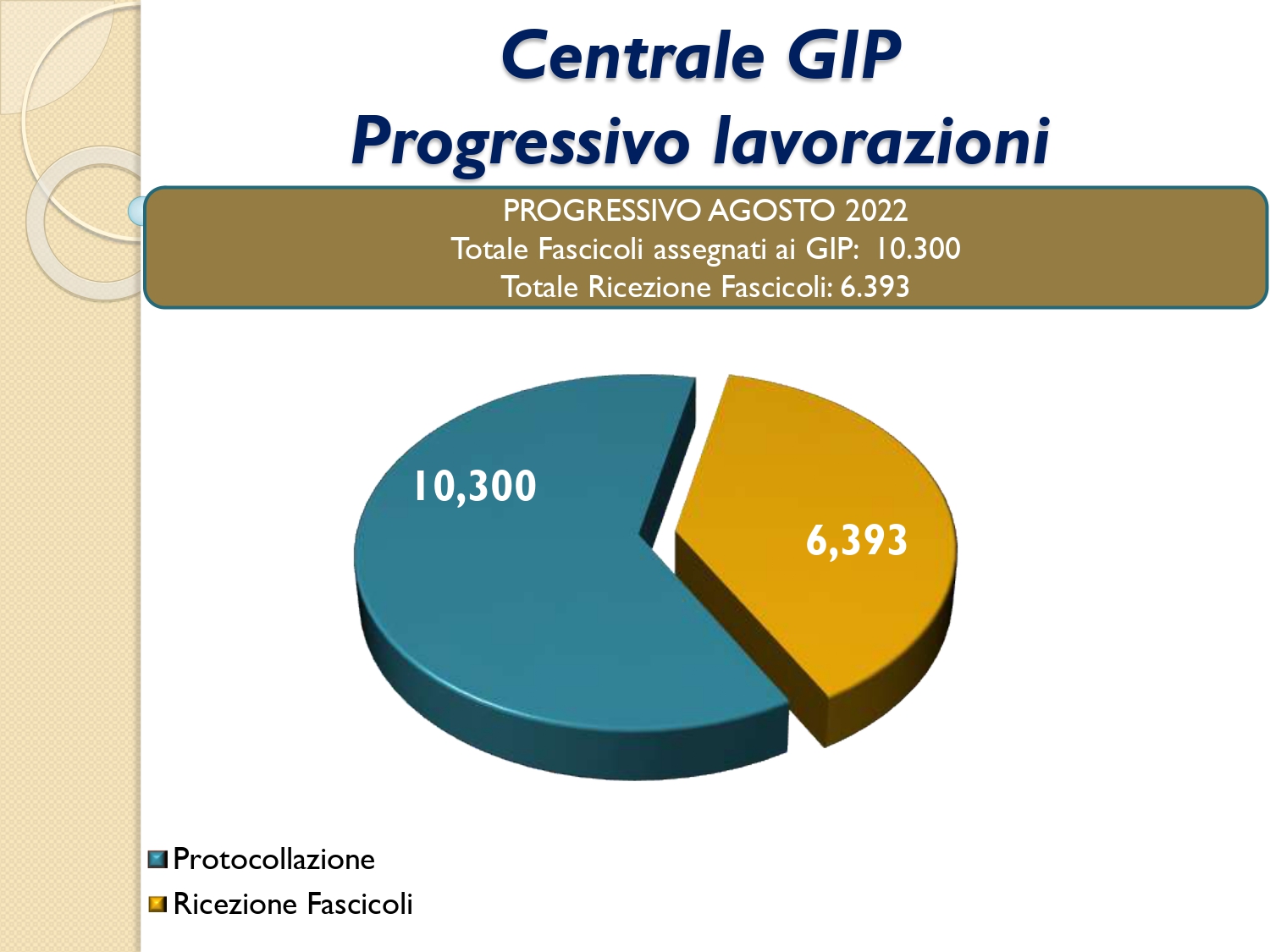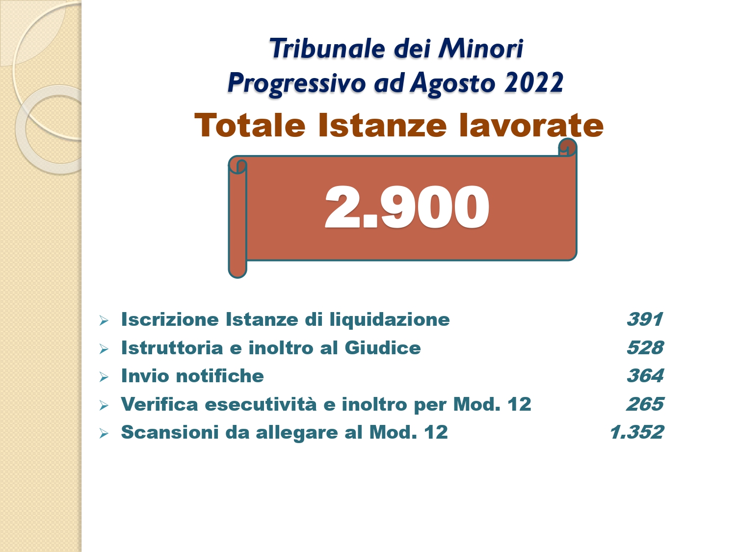 Il Consigliere Pontecorvo, nell?ambito dell?attività di monitoraggio e diffusione dei dati relativi al lavoro svolto dal personale a carico dell?Ordine e dislocato negli Uffici Giudiziari capitolini, illustra i dati aggiornati al mese di AGOSTO 2022: