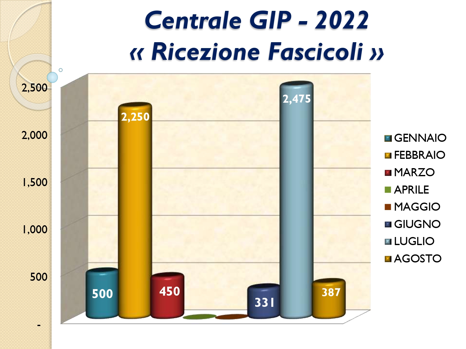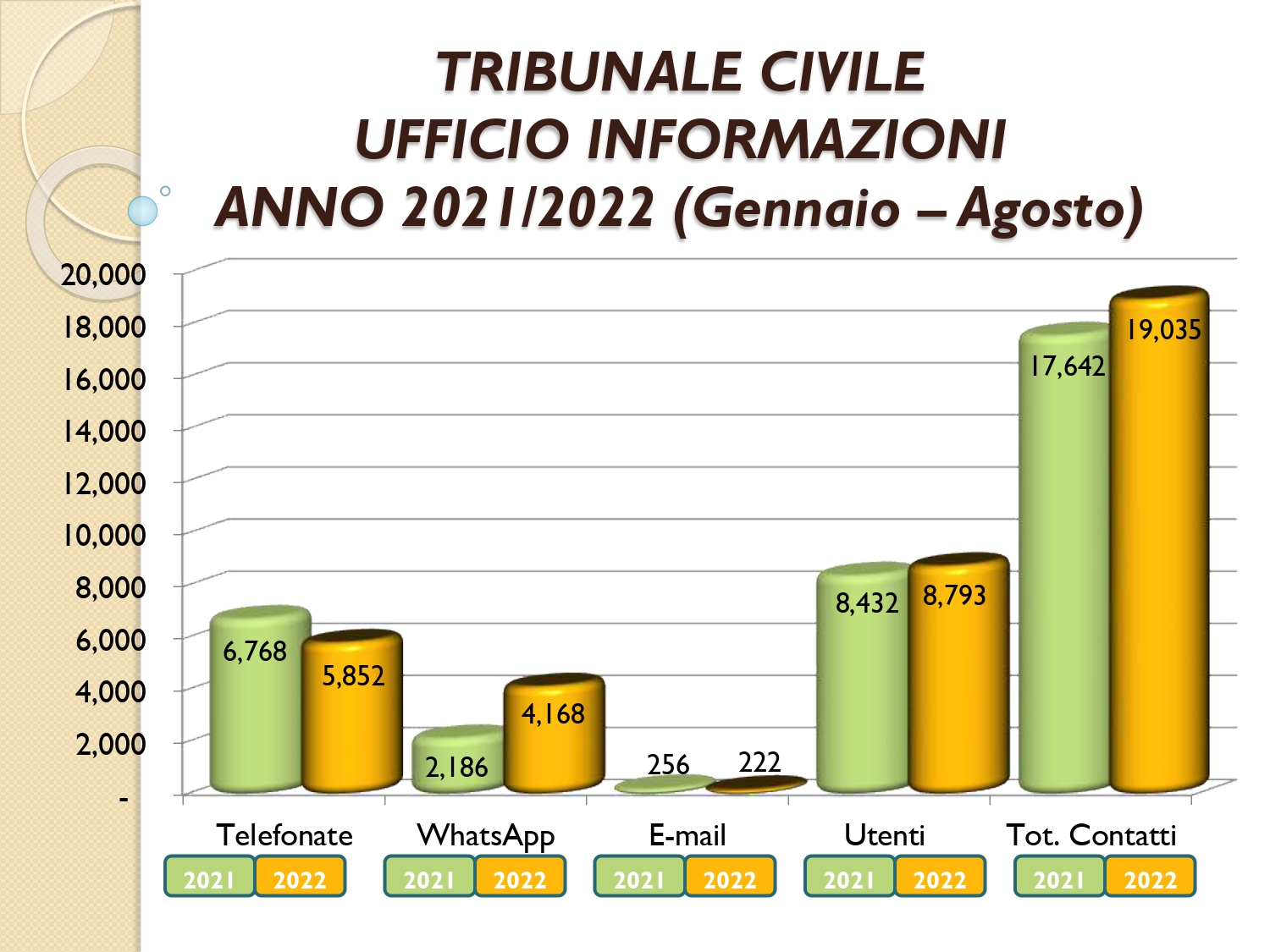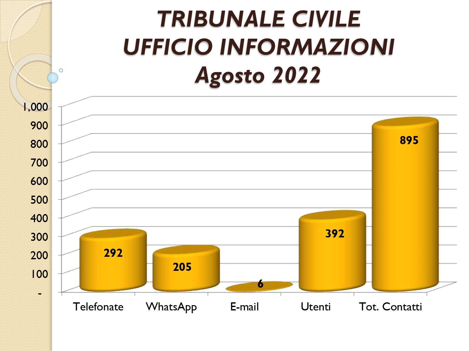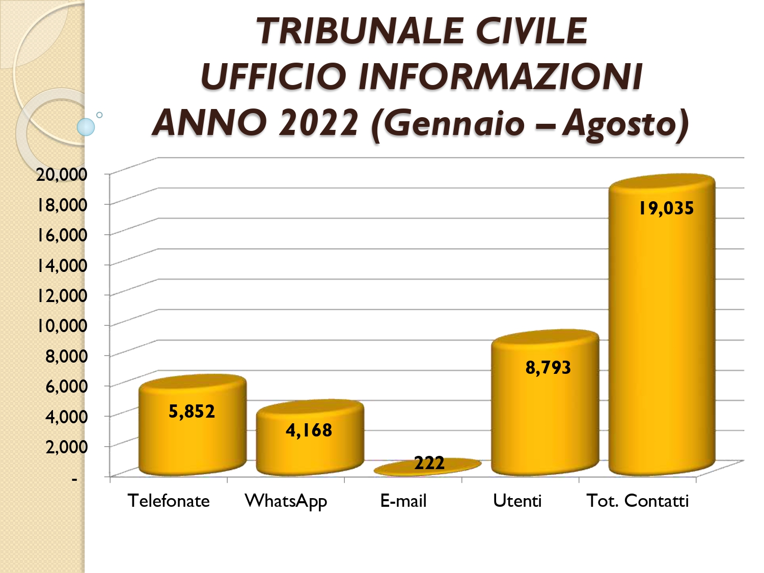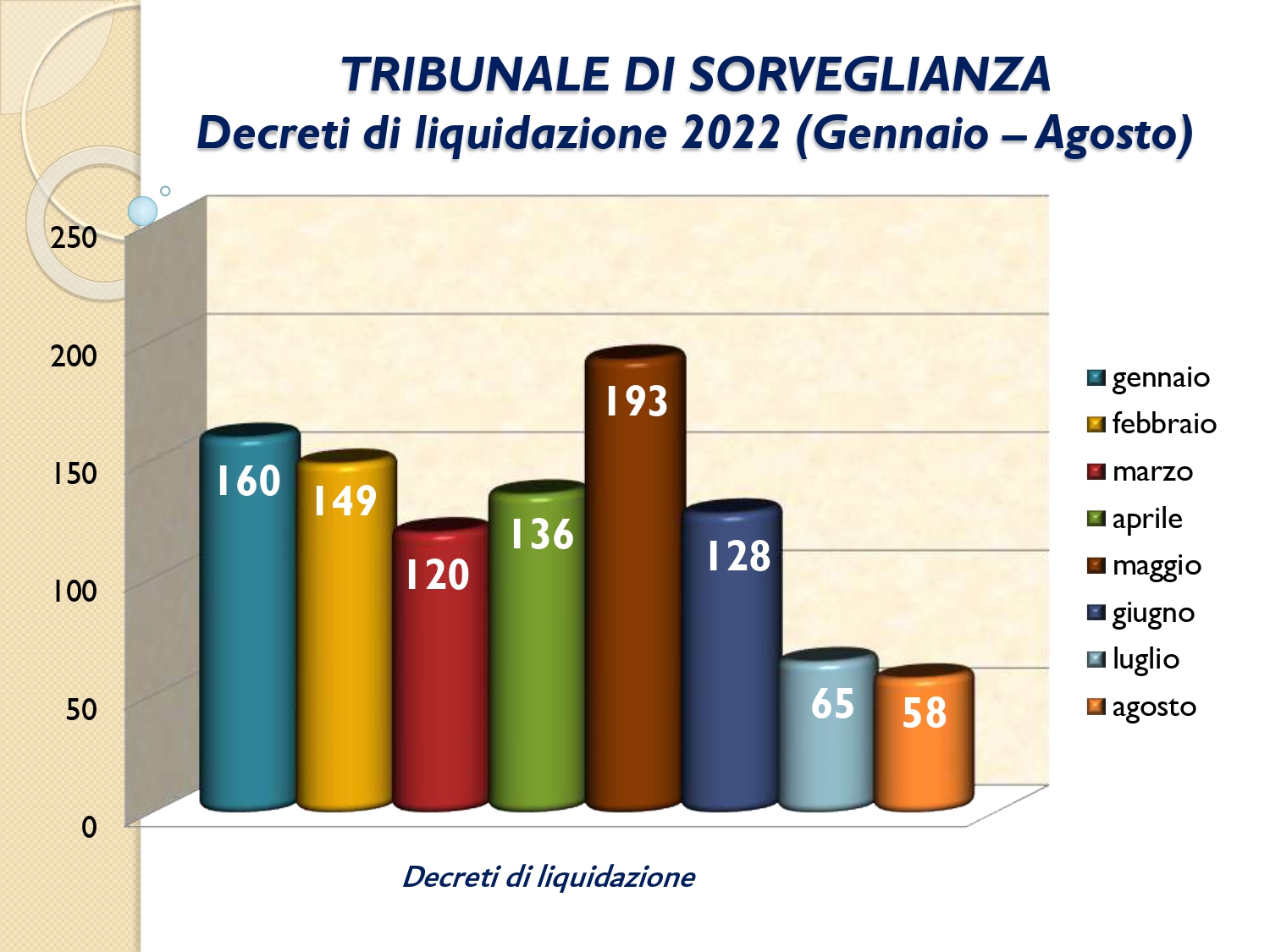 Il Consigliere Pontecorvo, nell?ambito dell?attività di monitoraggio e diffusione dei dati relativi al lavoro svolto dal personale a carico dell?Ordine e dislocato negli Uffici Giudiziari capitolini, illustra i dati aggiornati al mese di AGOSTO 2022: