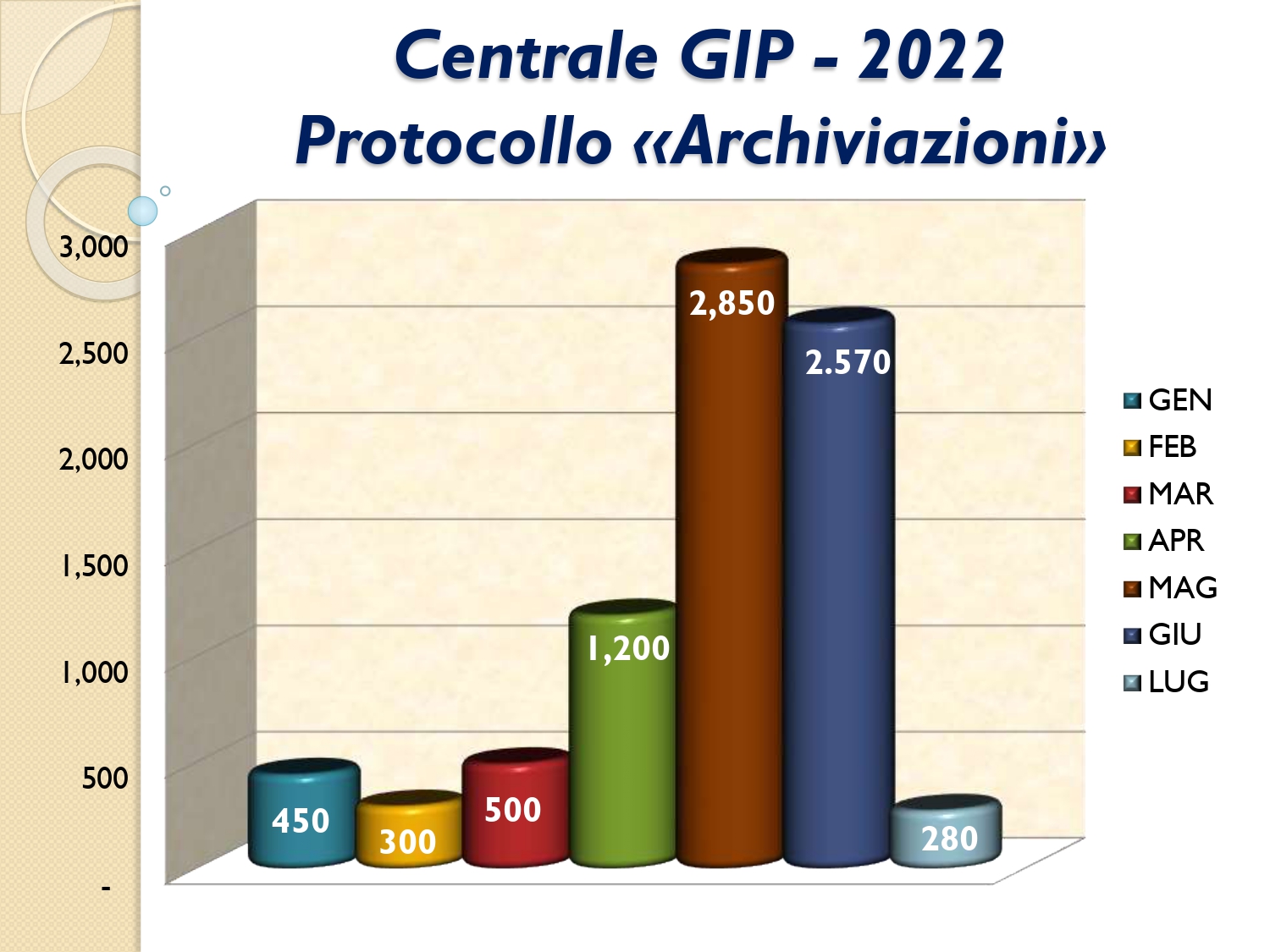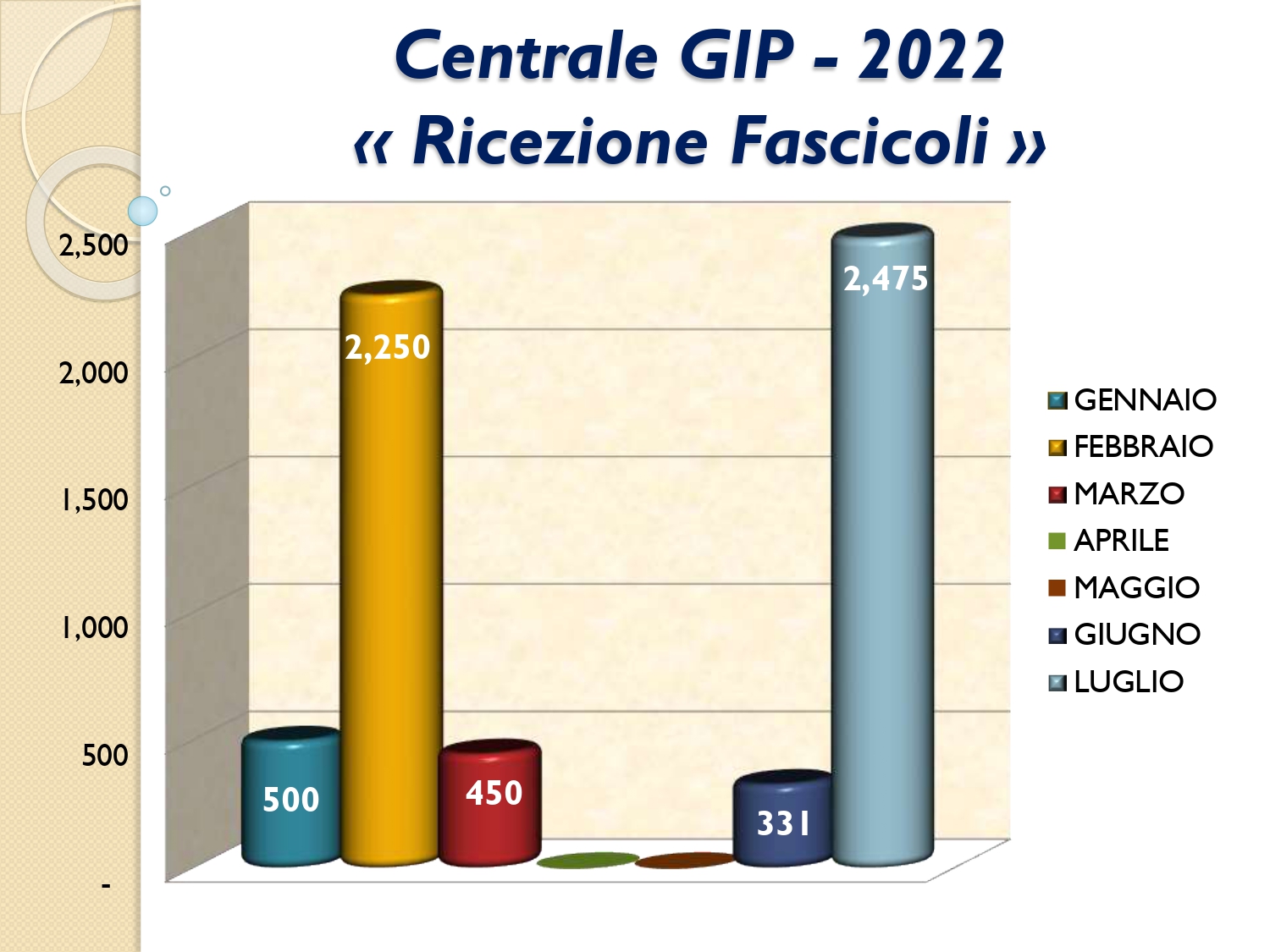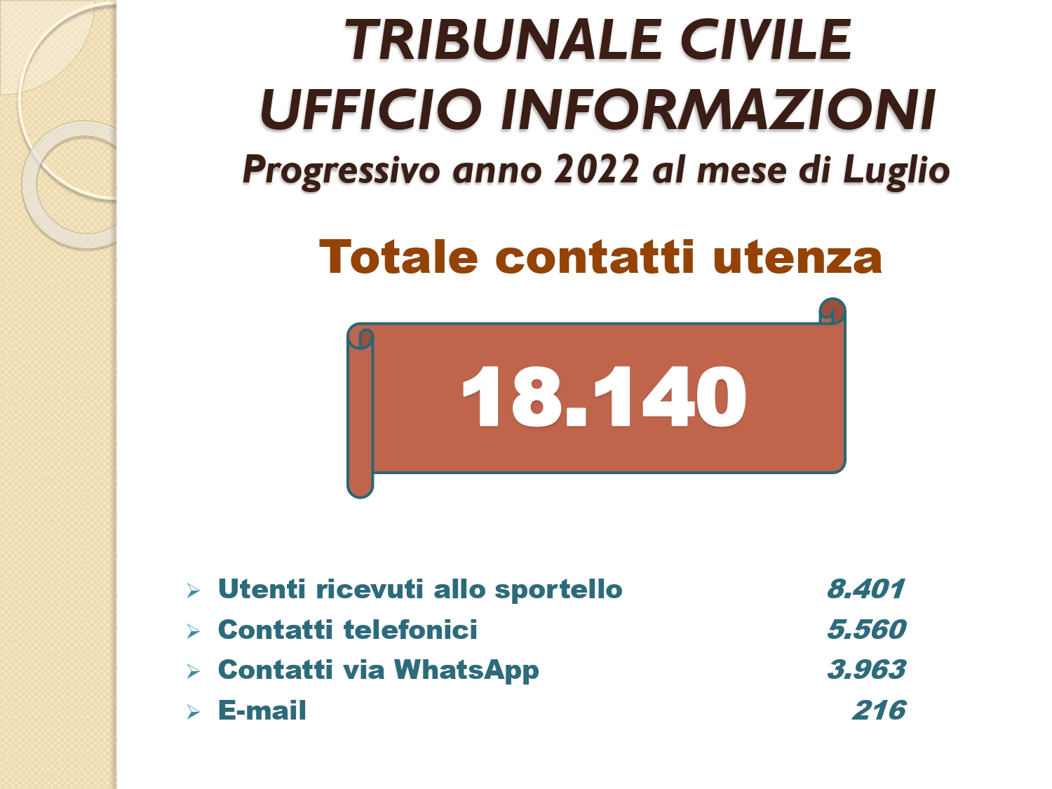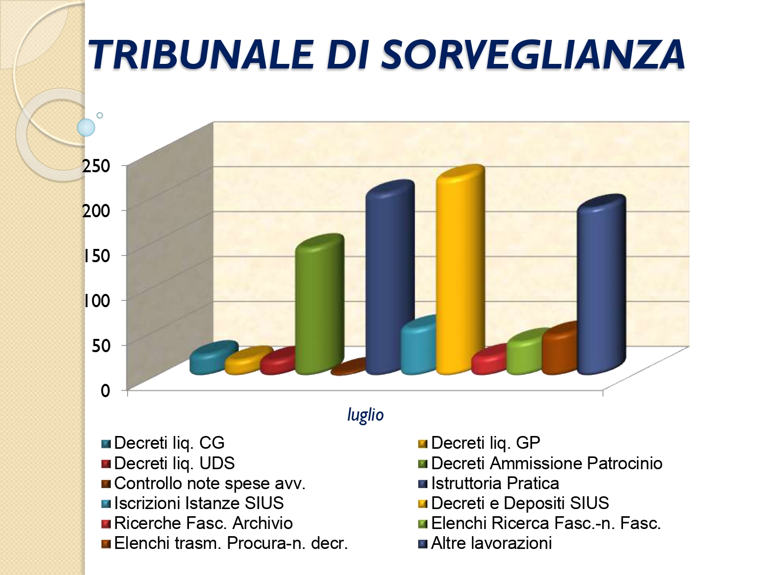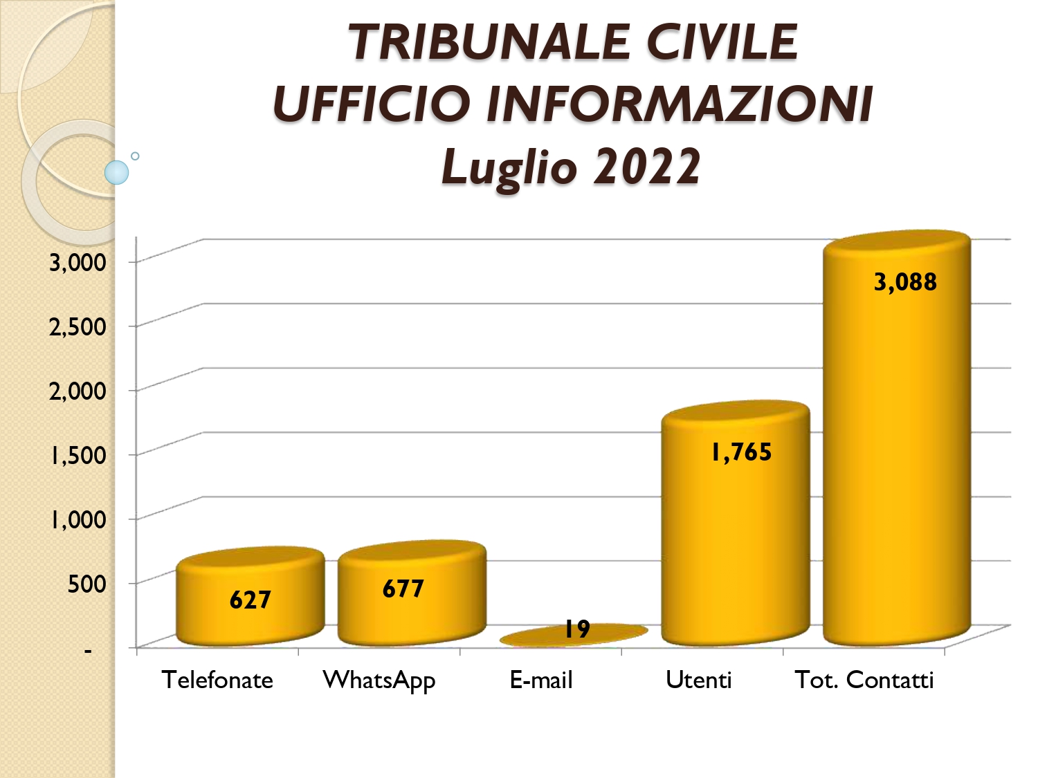 Il Consigliere Pontecorvo, nell?ambito dell?attività di monitoraggio e diffusione dei dati relativi al lavoro svolto dal personale a carico dell?Ordine e dislocato negli Uffici Giudiziari capitolini, illustra i dati aggiornati al mese di LUGLIO 2022: