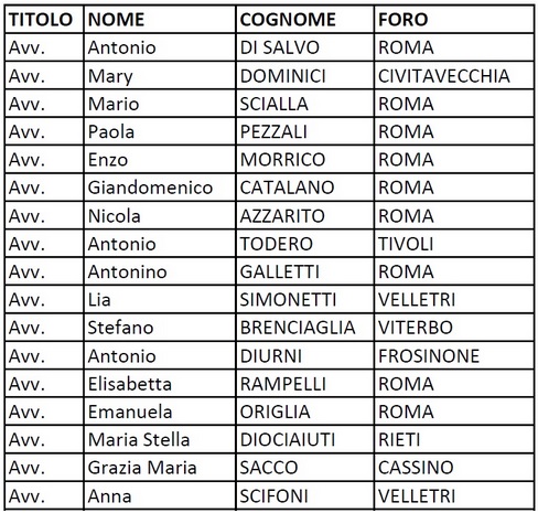 Si pubblica l'elenco delle candidature pervenute, relative alle elezioni dei componenti dell'O.C.F.