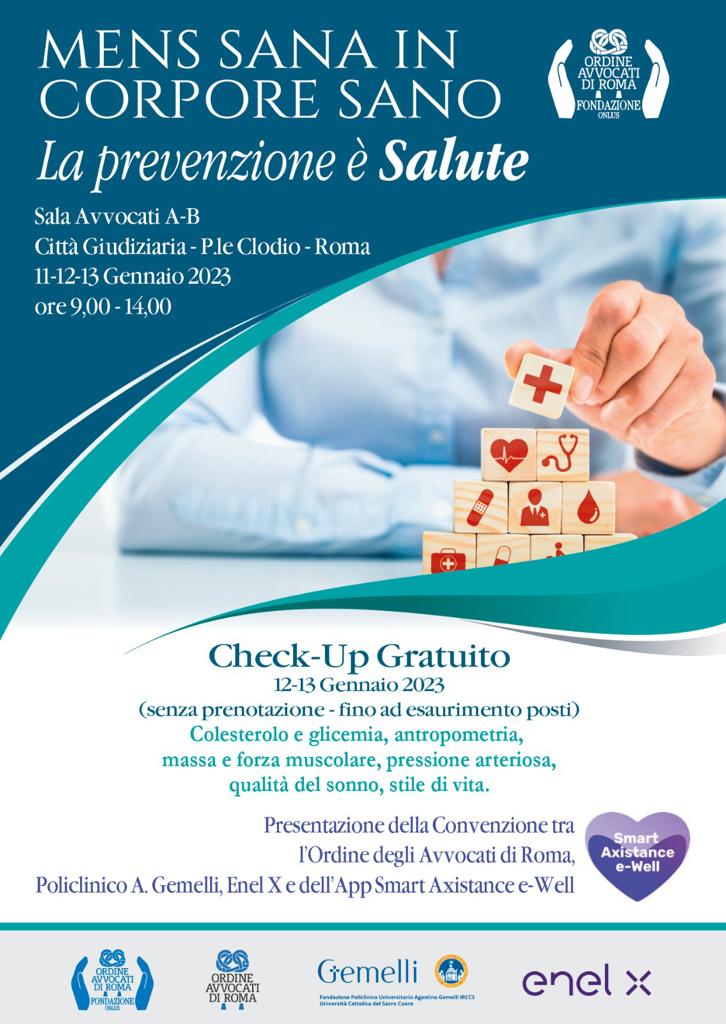 GIORNATE DI PREVENZIONE - 11/13 gennaio 2023 - Sala Avvocati A-B