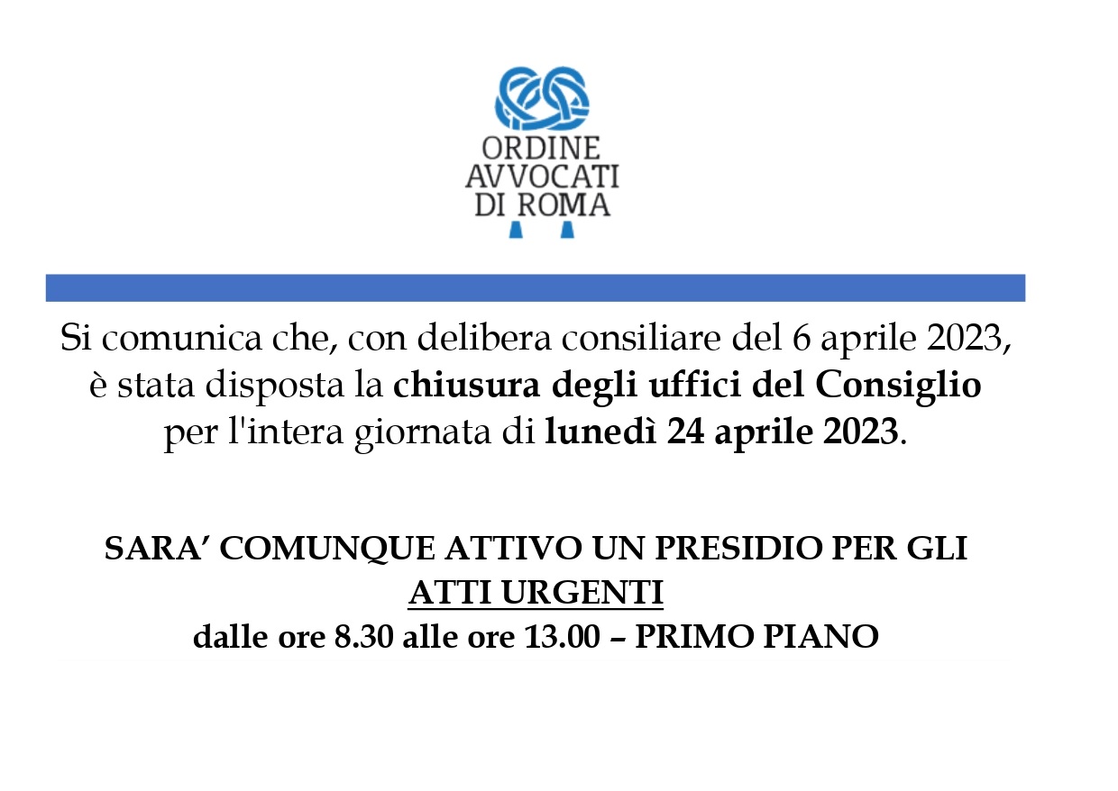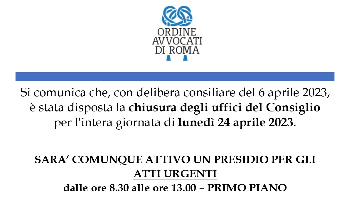 CHIUSURA UFFICI COA ROMA 24 APRILE 2023
