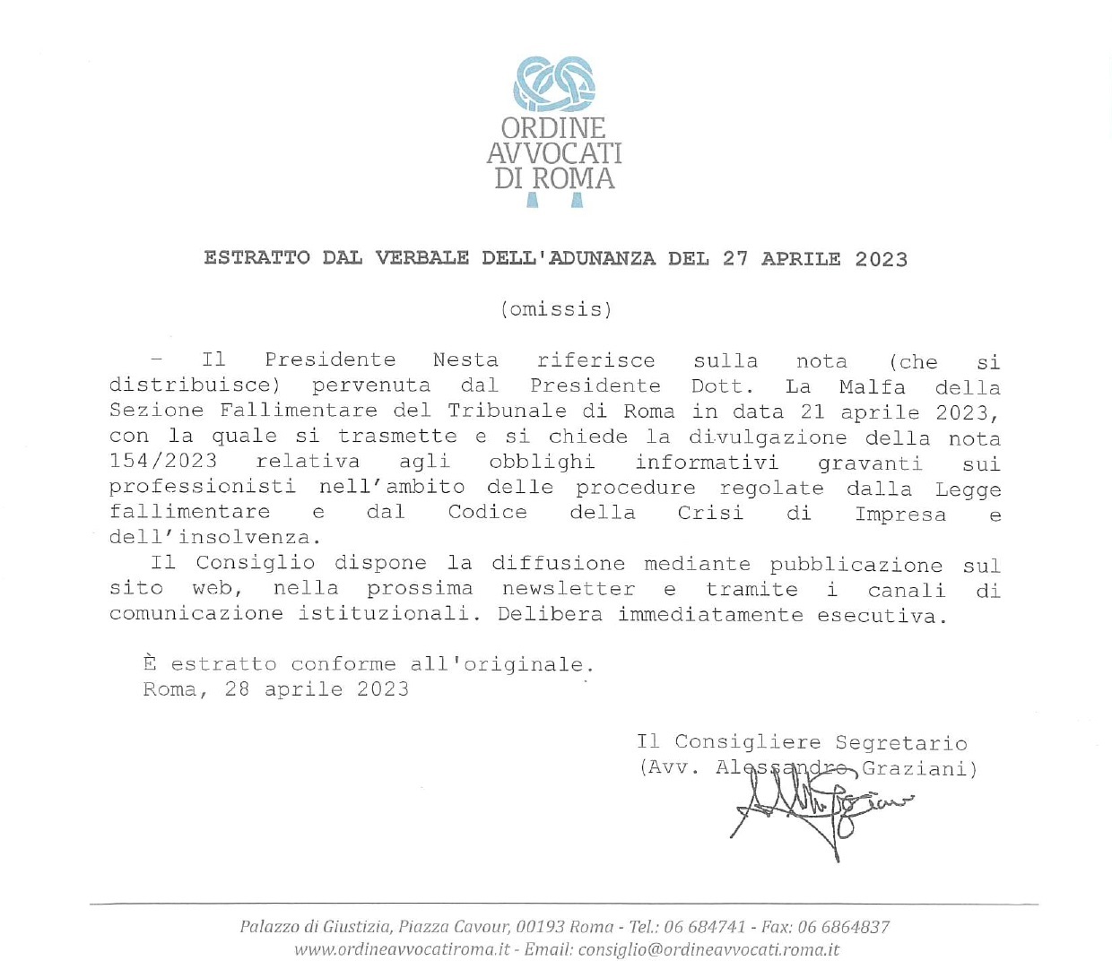 OBBLIGHI INFORMATIVI GRAVANTI SUI PROFESSIONISTI NELL'AMBITO DEELLE PROCEDURE REGOLATE DALLA L. FALLIMENTARE E DAL CODICE DELLA CRISI DI IMPRESA E DELL'INSOLVENZA
