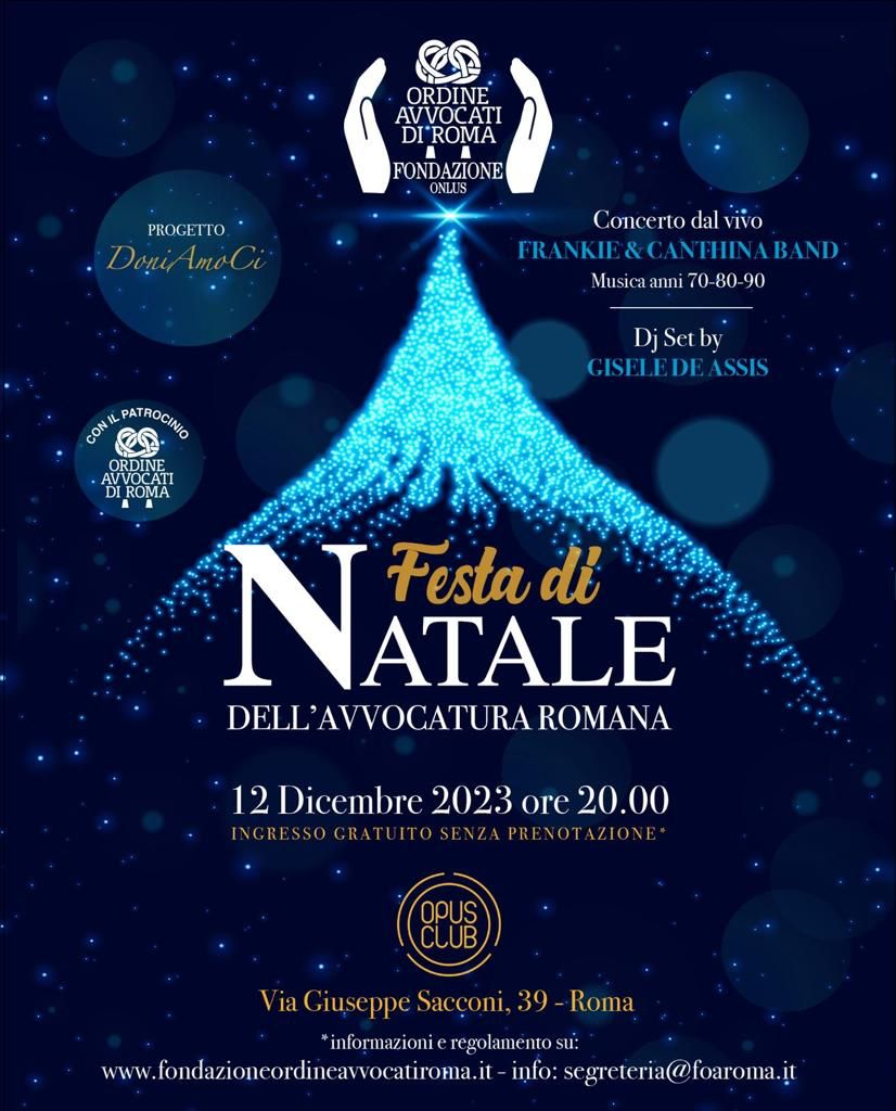 - Con la Fondazione Ordine Avvocati Roma - Onlus, il 12.12.2023, dalle ore 20:00, presso OPUS CLUB (Via Giuseppe Sacconi 39, Roma) - Ingresso gratuito e senza prenotazione per Avvocati e loro accompagnatori, con esibizione tesserino ordine all?ingresso. Buffet gratuito all?inizio serata e consumazioni libere e a pagamento.