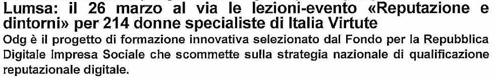 Odg è il progetto di formazione innovativa selezionato dal Fondo per la Repubblica Digitale Impresa Sociale che scommette sulla strategia nazionale di qualificazione reputazionale digitale.