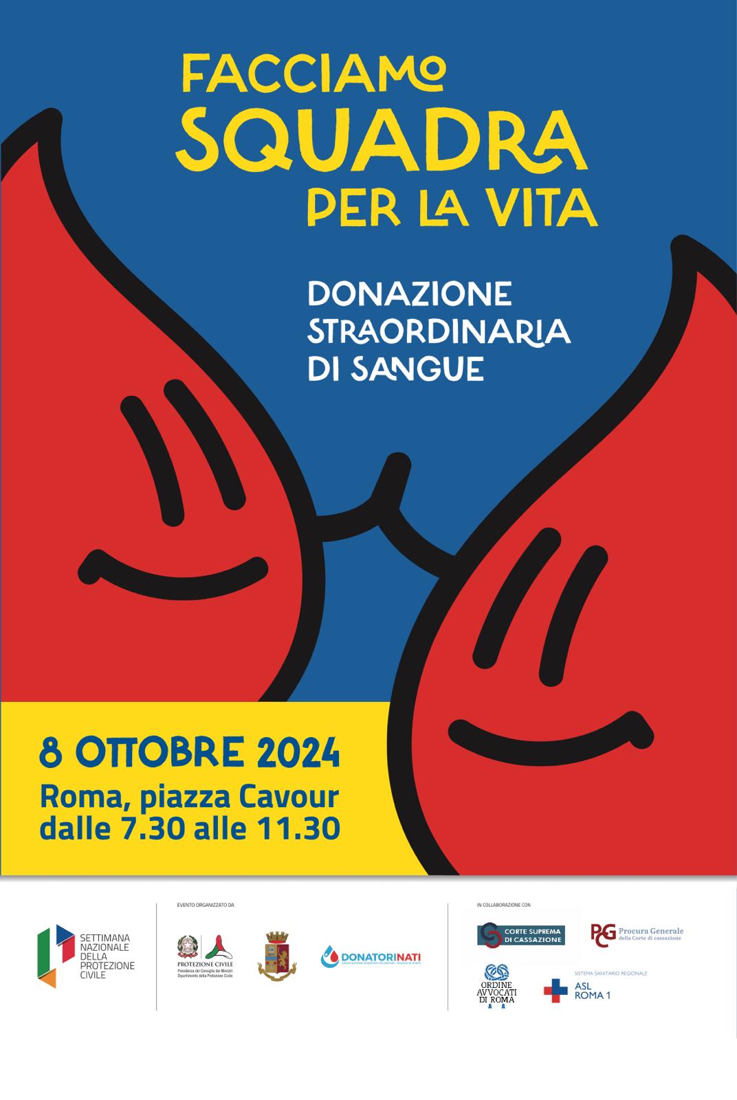 Nel segno della collaborazione con altre Istituzioni, il Consiglio dell'Ordine degli Avvocati di Roma organizza una giornata di donazione del sangue: l?8 ottobre, dalle ore 8:00 alle 11:30, in Piazza Cavour, nella bella area antistante il palazzo della Corte Suprema di Cassazione.