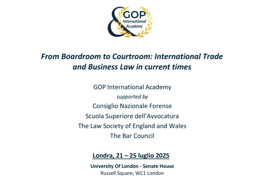 Al via la Summer School GOP 2025 “From Boardroom to Courtroom: International Trade and Business Law in current times” in memoria di Guido Alpa che si svolgerà dal 21 al 25 luglio 2025 a Londra.