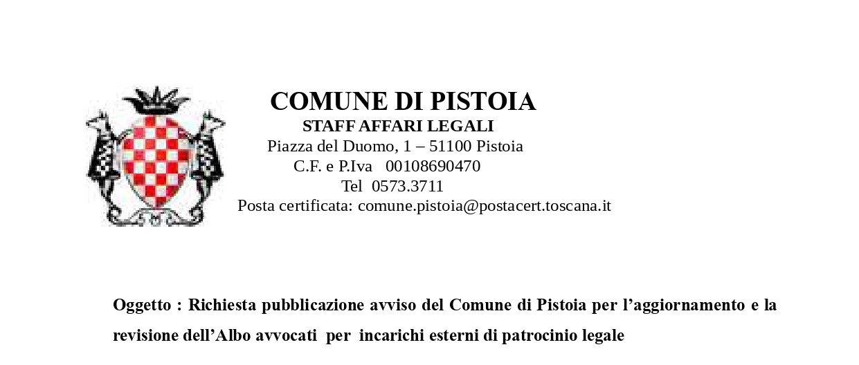 COMUNE DI PISTOIA: AVVISO PUBBLICO INCARICHI ESTERNI