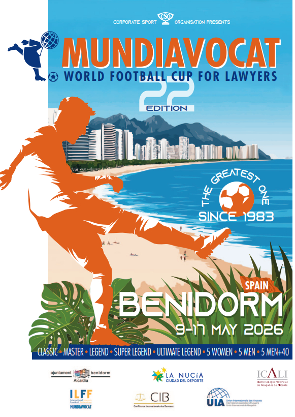 Il Presidente dell’Ordine di Alicante, ha trasmesso l'invito a partecipare al World Football Cup degli Avvocati MUNDIAVOCAT 2026 che si svolgerà dal 9 al 17 maggio a Benidorm in Spagna.